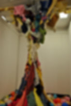 In this installation "Forgotten Memories", I created a representation of a “playground” using children's cloths on the bottom transforming into adults' clothes on the top. There are 7 necklaces hidden in the pile, symbolizing childhood memories. Viewers are allowed to find and keep the necklaces. As they step into the “playground” and try to find the “treasures", they are recapturing the playing moments from childhood from an